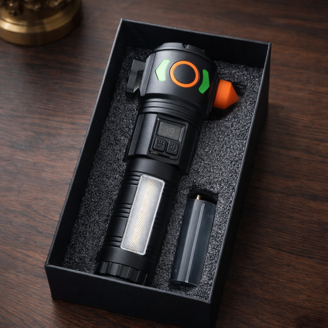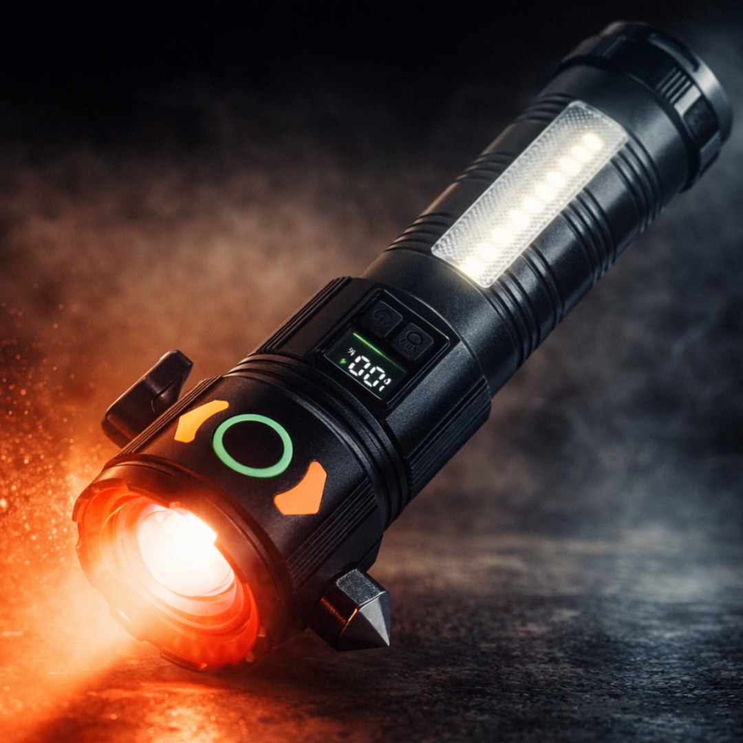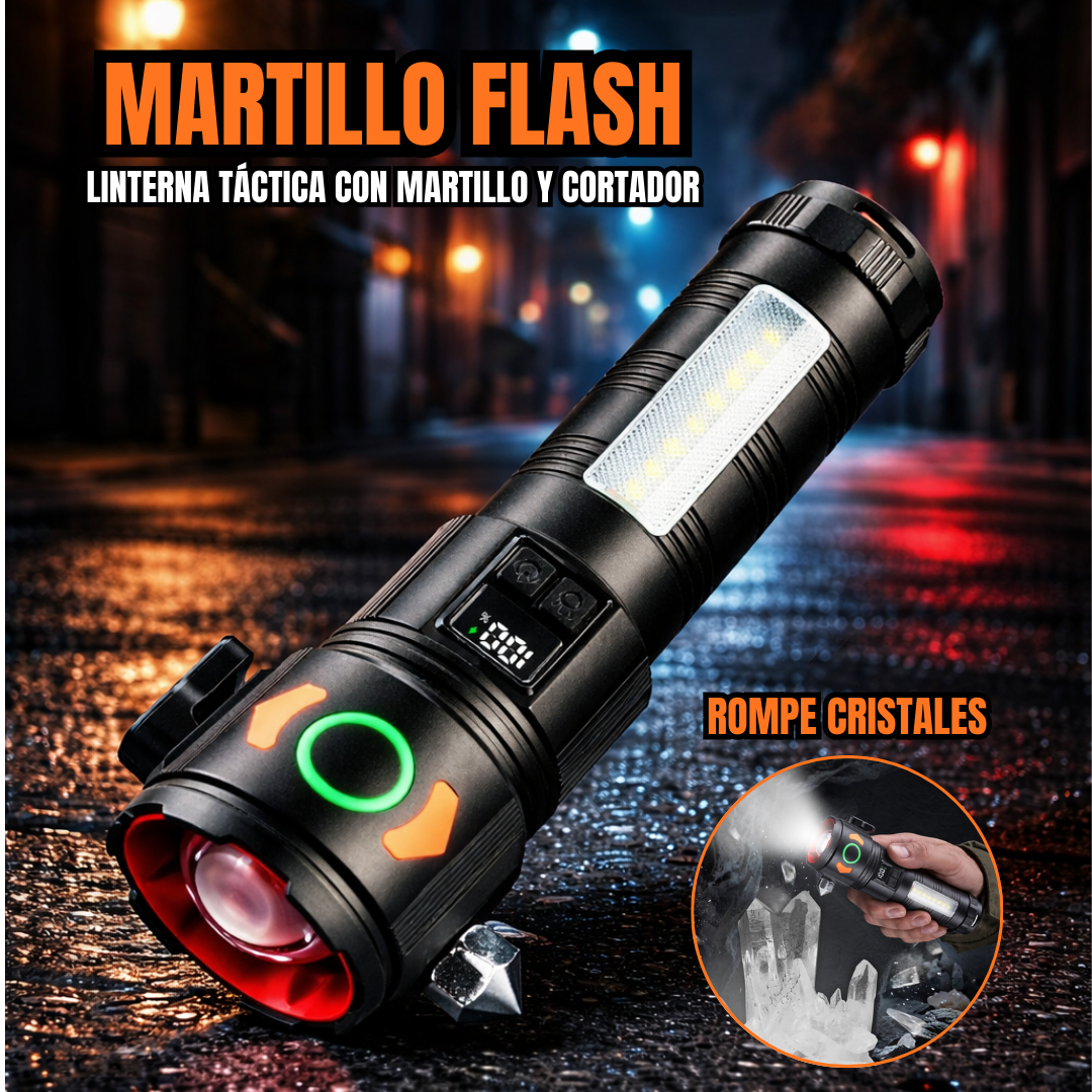 LINTERNA TÁCTICA RECARGABLE CON MARTILLO INTEGRADO